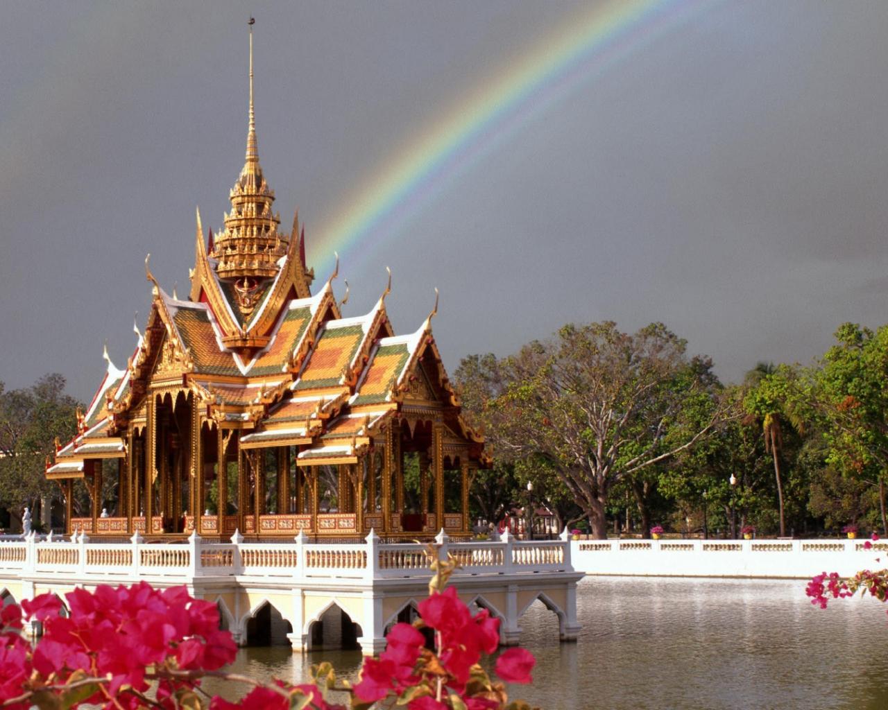 Wallpaper Rainbow over the pagoda