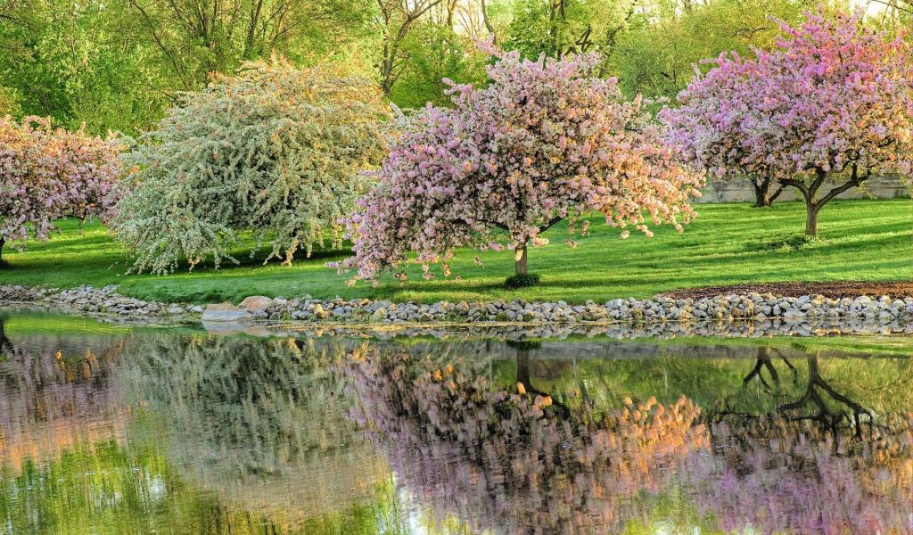 Wallpaper Garden of flowering trees