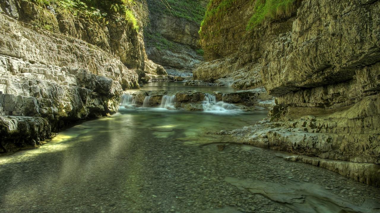 Wallpaper Spring River between mountains