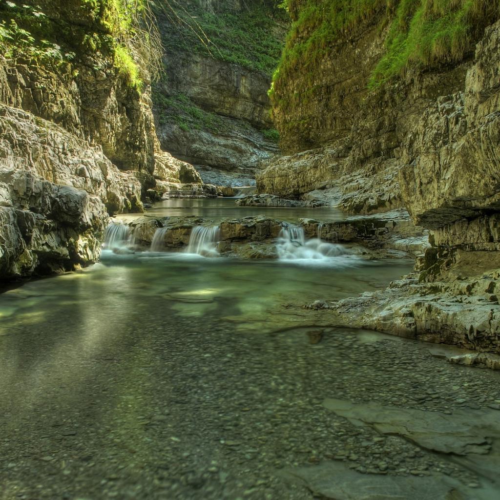 Wallpaper Spring River between mountains