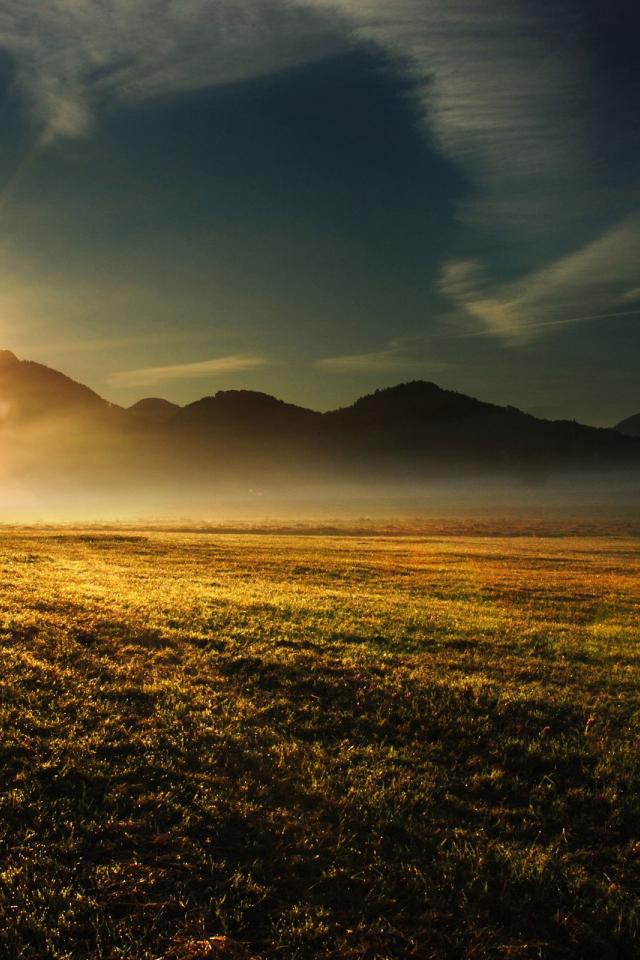 Wallpaper Sunset over a field of spring