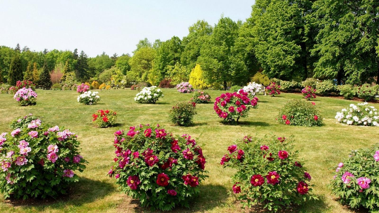 Wallpaper Spring meadow with flowering shrubs