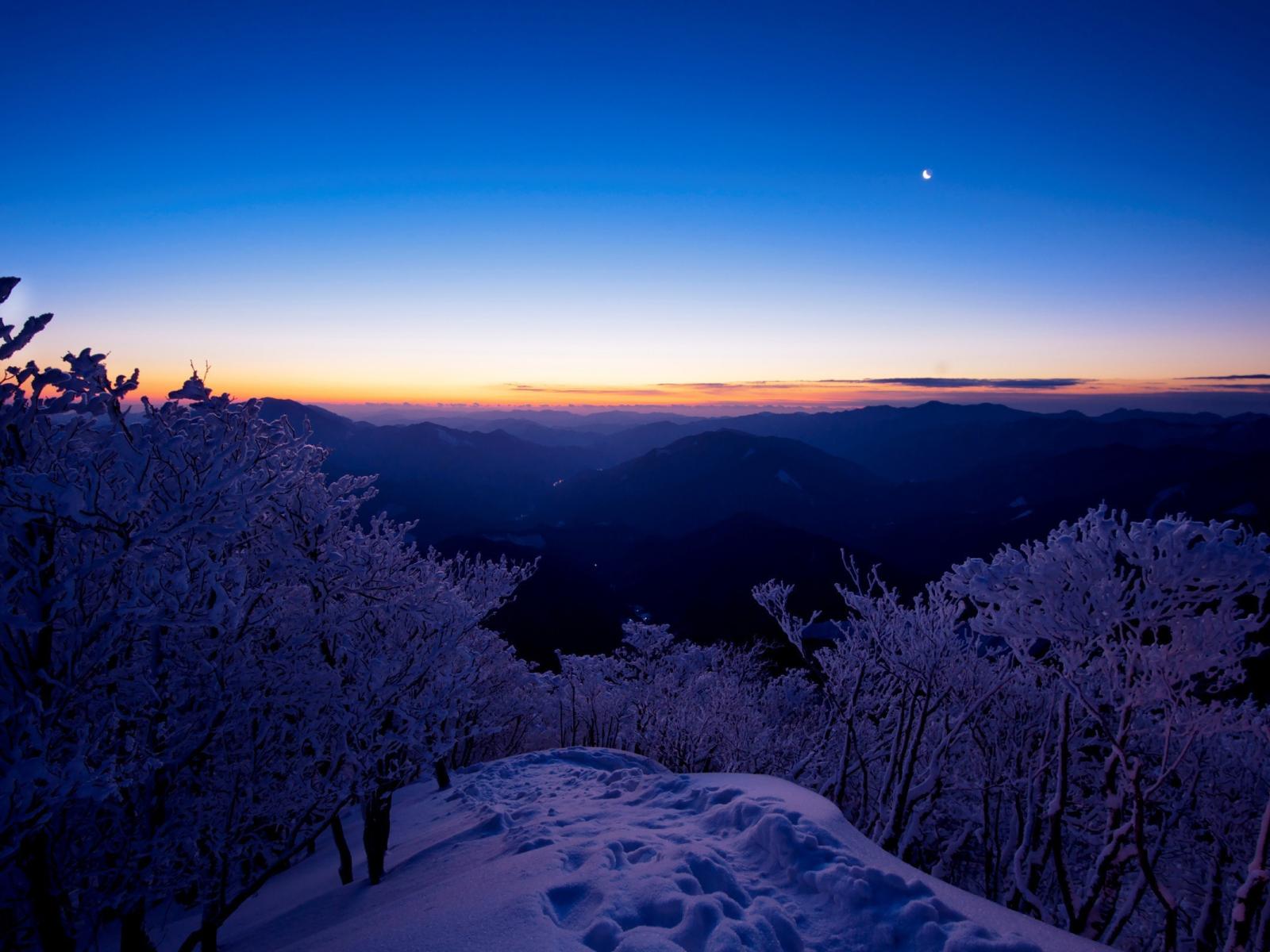 Wallpaper Footprints in the snow-covered hill