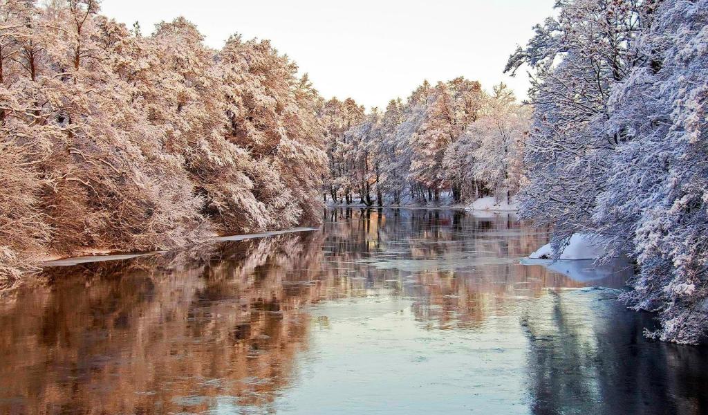 Wallpaper Frosted trees over water river