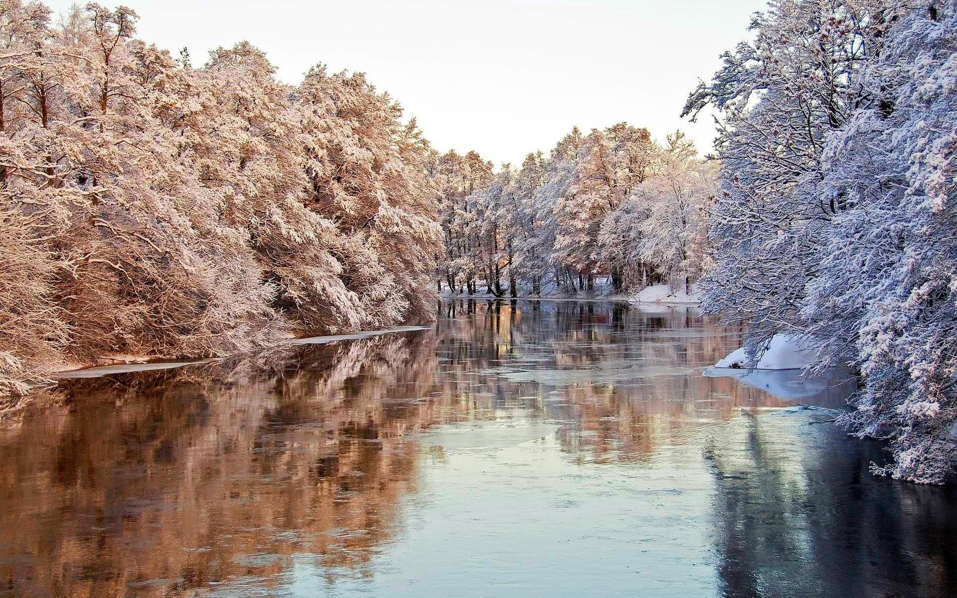 Wallpaper Frosted trees over water river