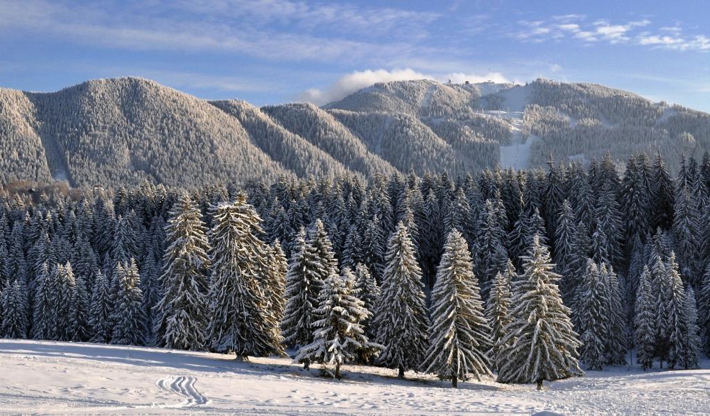 Wallpaper Trees covered with snow gently