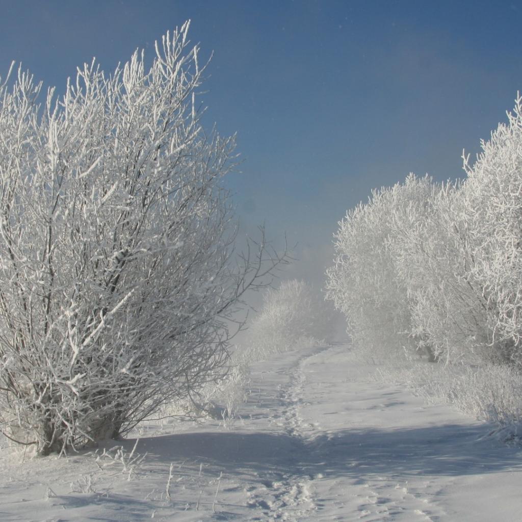 Wallpaper The trail among animals winter trees
