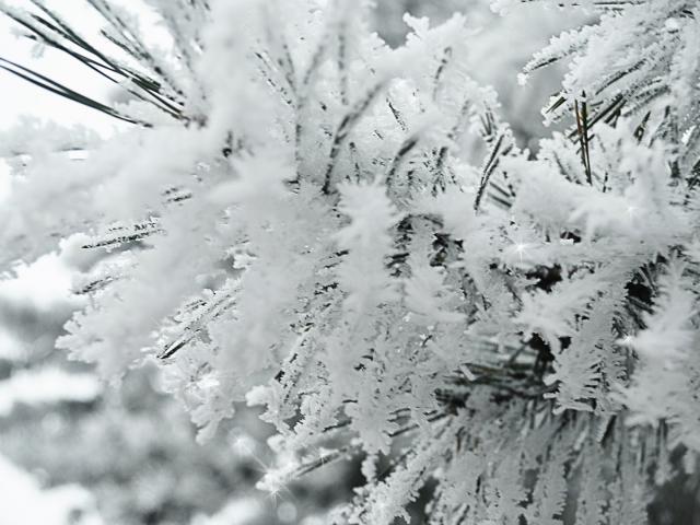 Wallpaper Fluffy hoarfrost on a branch
