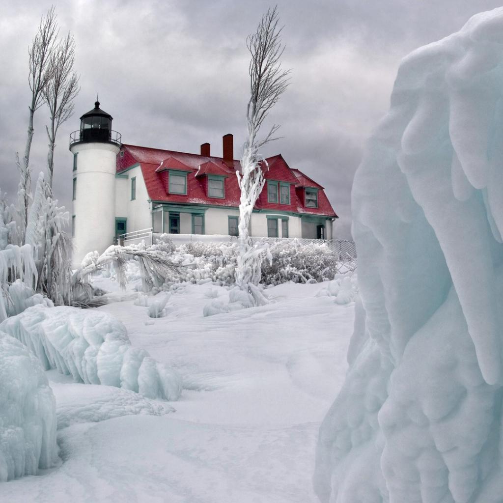Wallpaper Lighthouse in the ice breakers