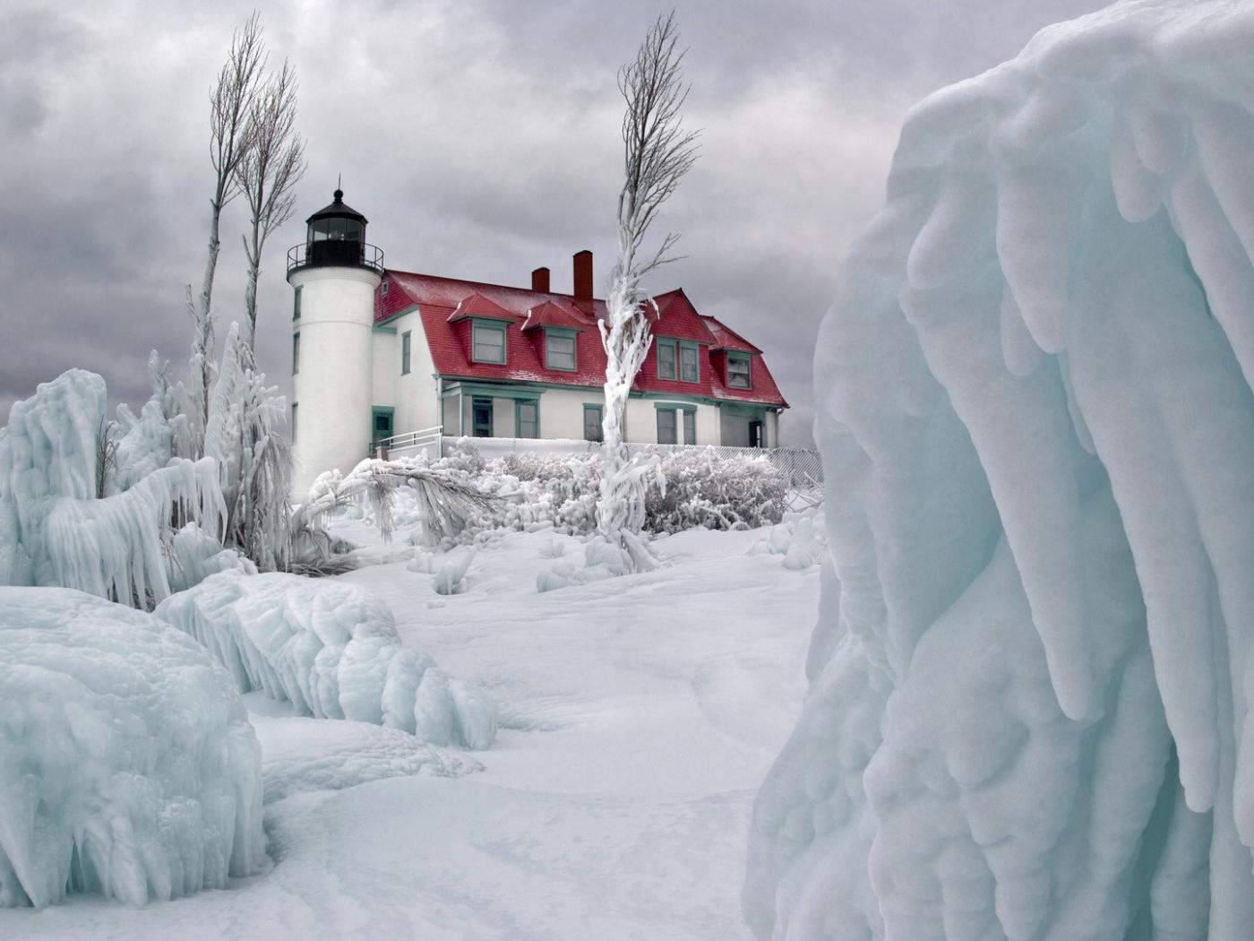 Wallpaper Lighthouse in the ice breakers