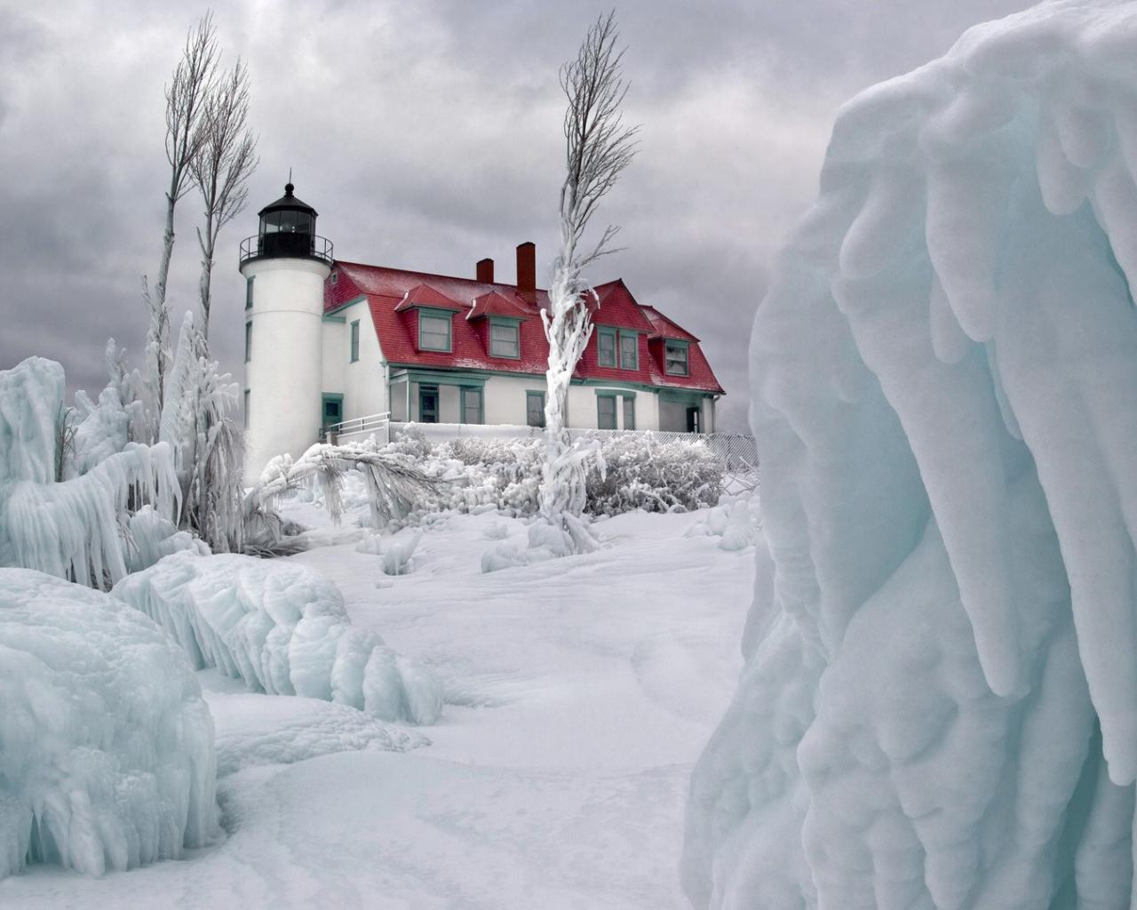 Wallpaper Lighthouse in the ice breakers