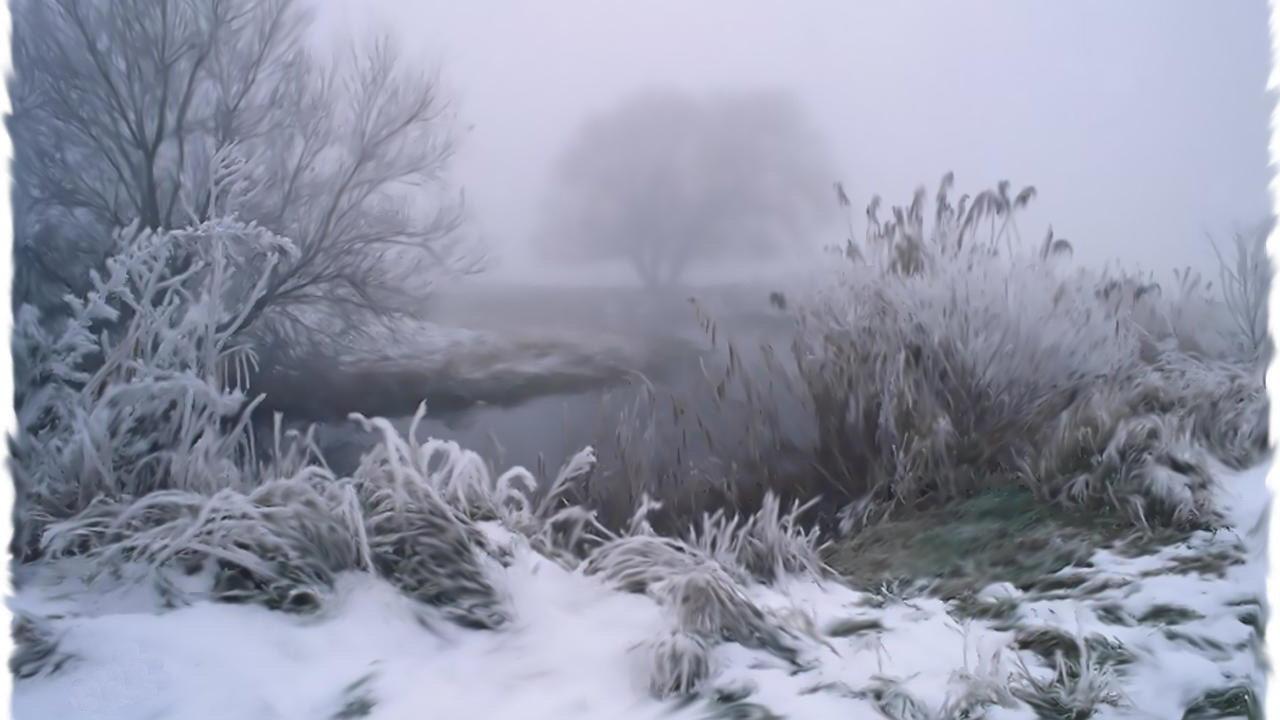 Wallpaper Mill among the dead wood covered with frost