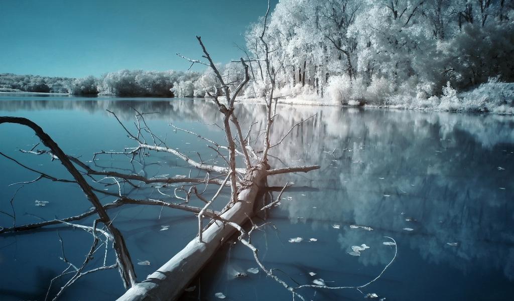 Wallpaper Dry tree on a frozen river
