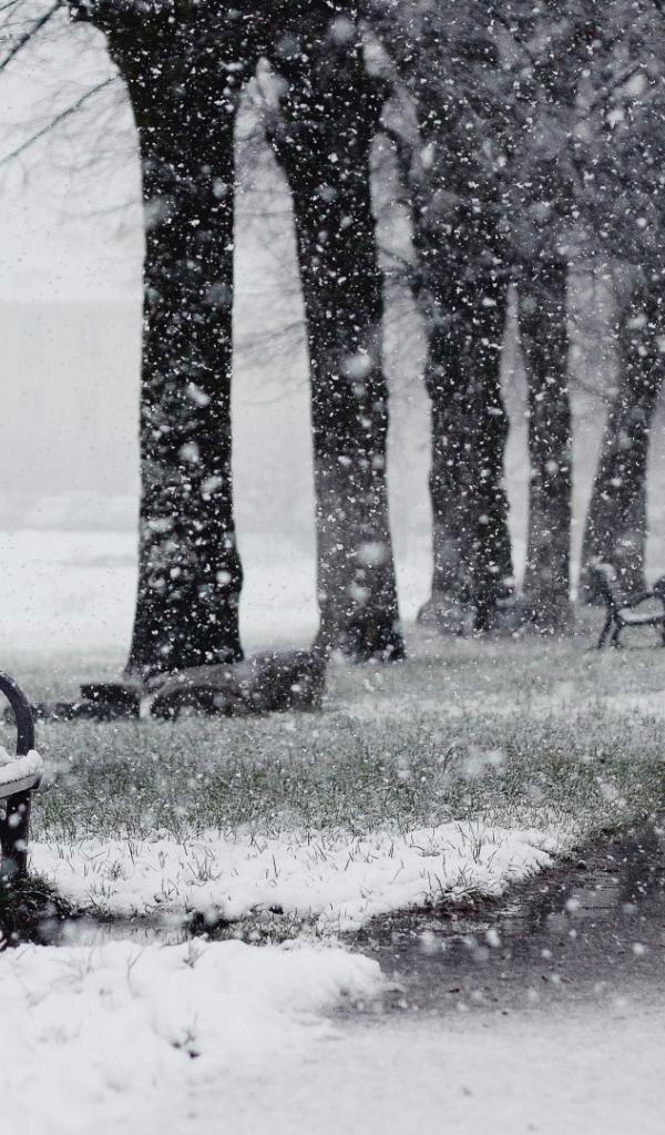 Wallpaper Thick snow on park avenue