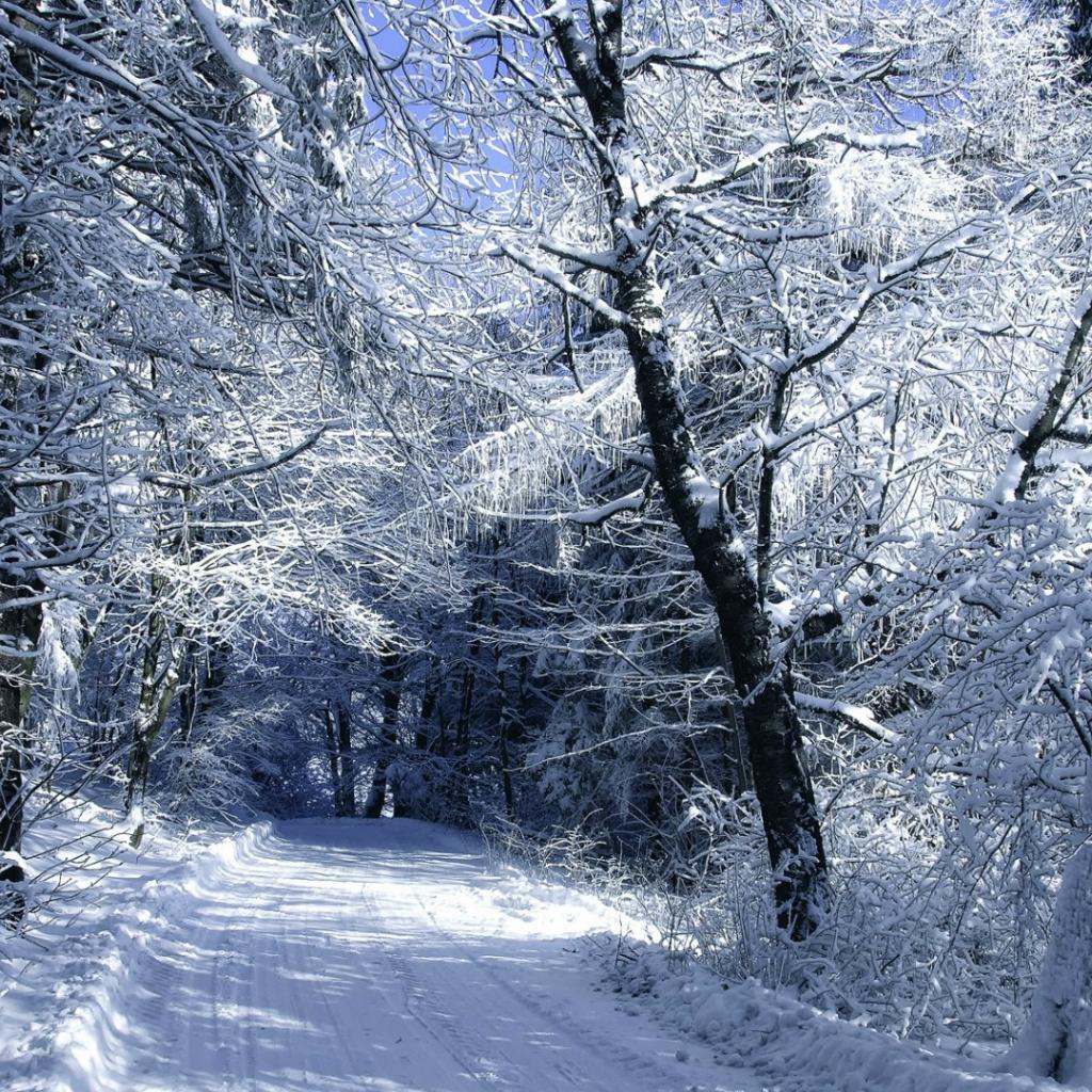 Wallpaper Snow-covered road in the woods