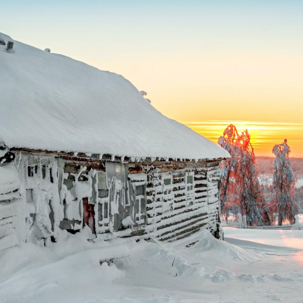 Wallpaper Hut plastered with snow