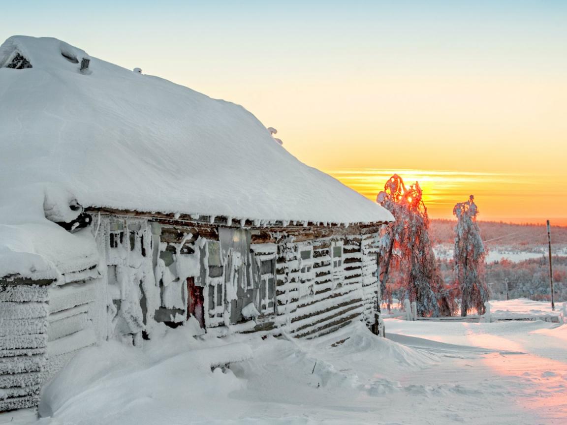 Wallpaper Hut plastered with snow