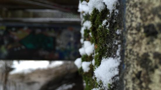 Wallpaper Snow on the moss-covered wall