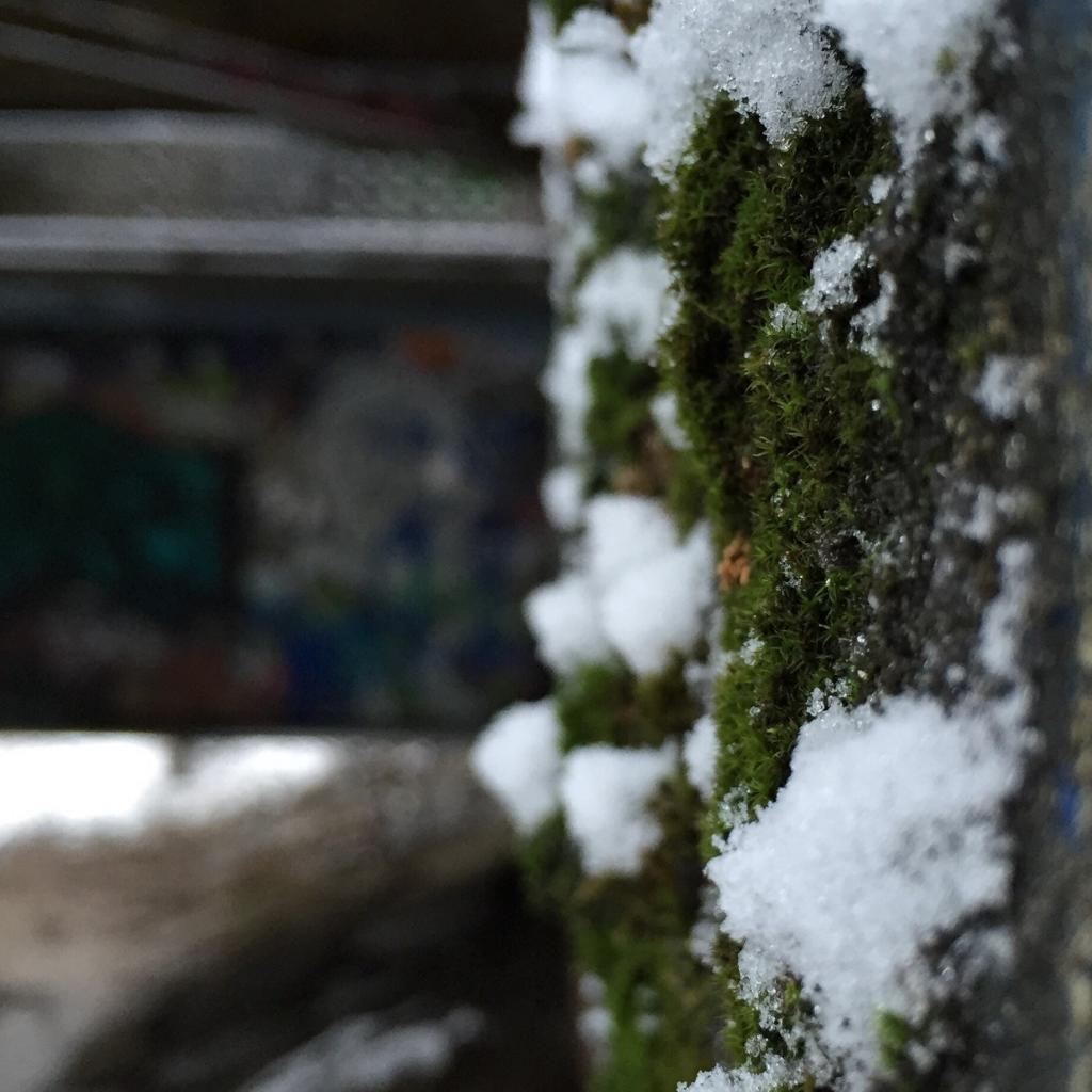 Wallpaper Snow on the moss-covered wall