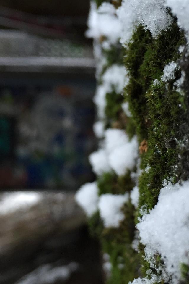 Wallpaper Snow on the moss-covered wall