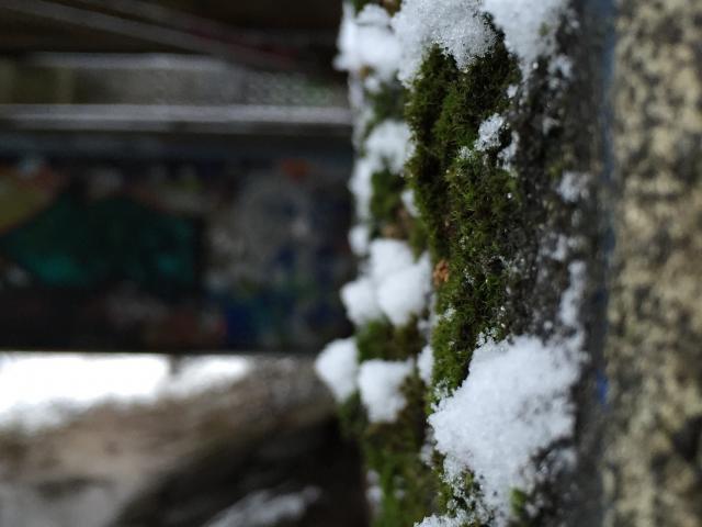 Wallpaper Snow on the moss-covered wall