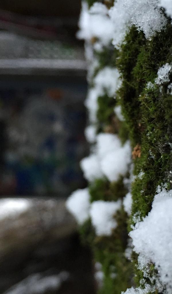 Wallpaper Snow on the moss-covered wall
