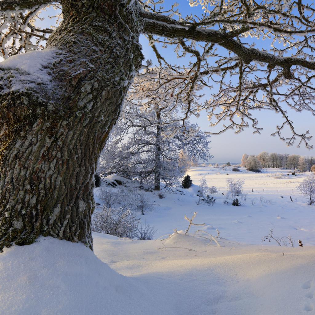 Wallpaper A thick tree in the snow