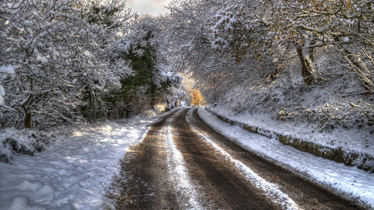Wallpaper Snow, Road, Winter night, Sun, Moon, Stars, Winter road