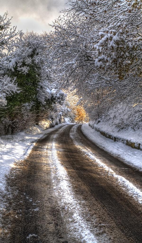 Wallpaper Snow, Road, Winter night, Sun, Moon, Stars, Winter road