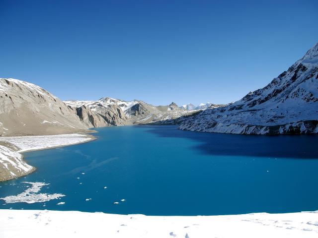 Wallpaper Mountain Lake is covered with ice