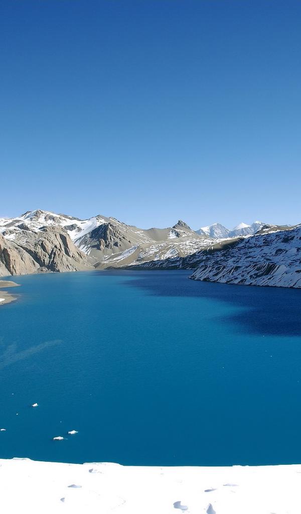 Wallpaper Mountain Lake is covered with ice