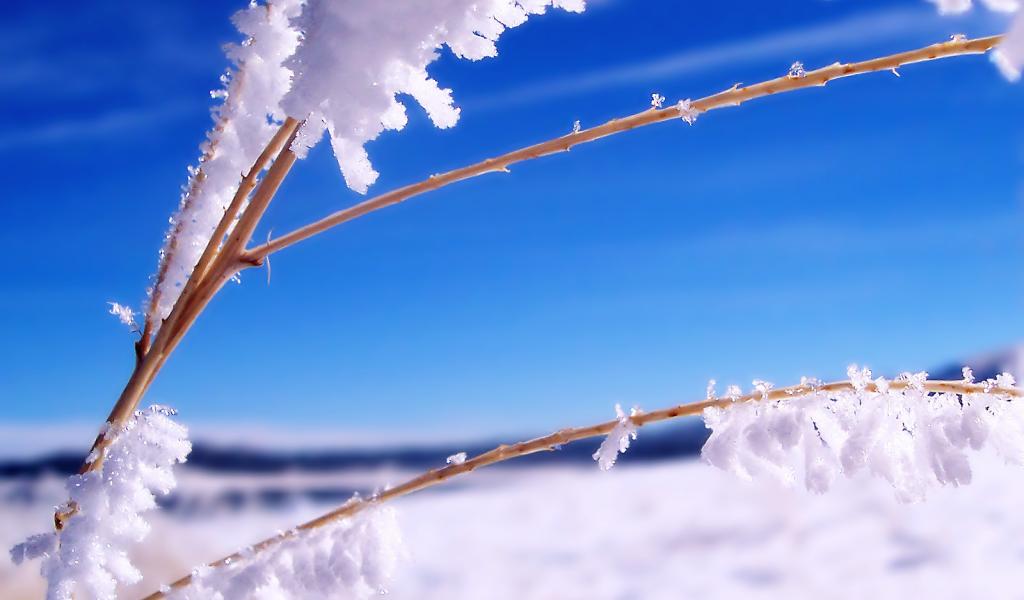 Wallpaper Winter sun illuminates the snow-covered branch in the forest