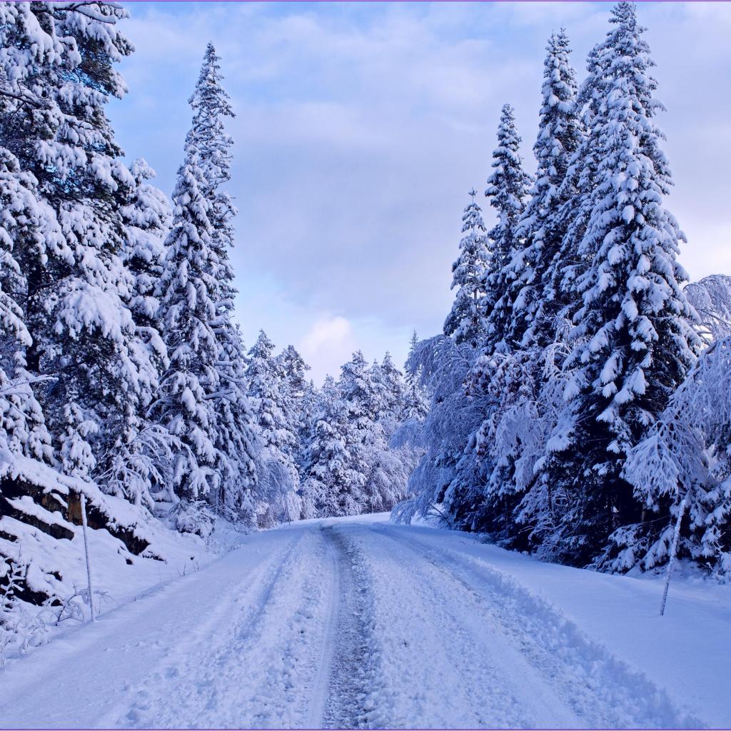 Wallpaper Snow-covered road through the trees