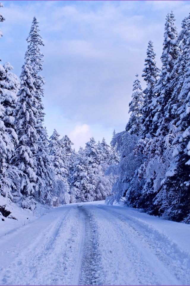Wallpaper Snow-covered road through the trees