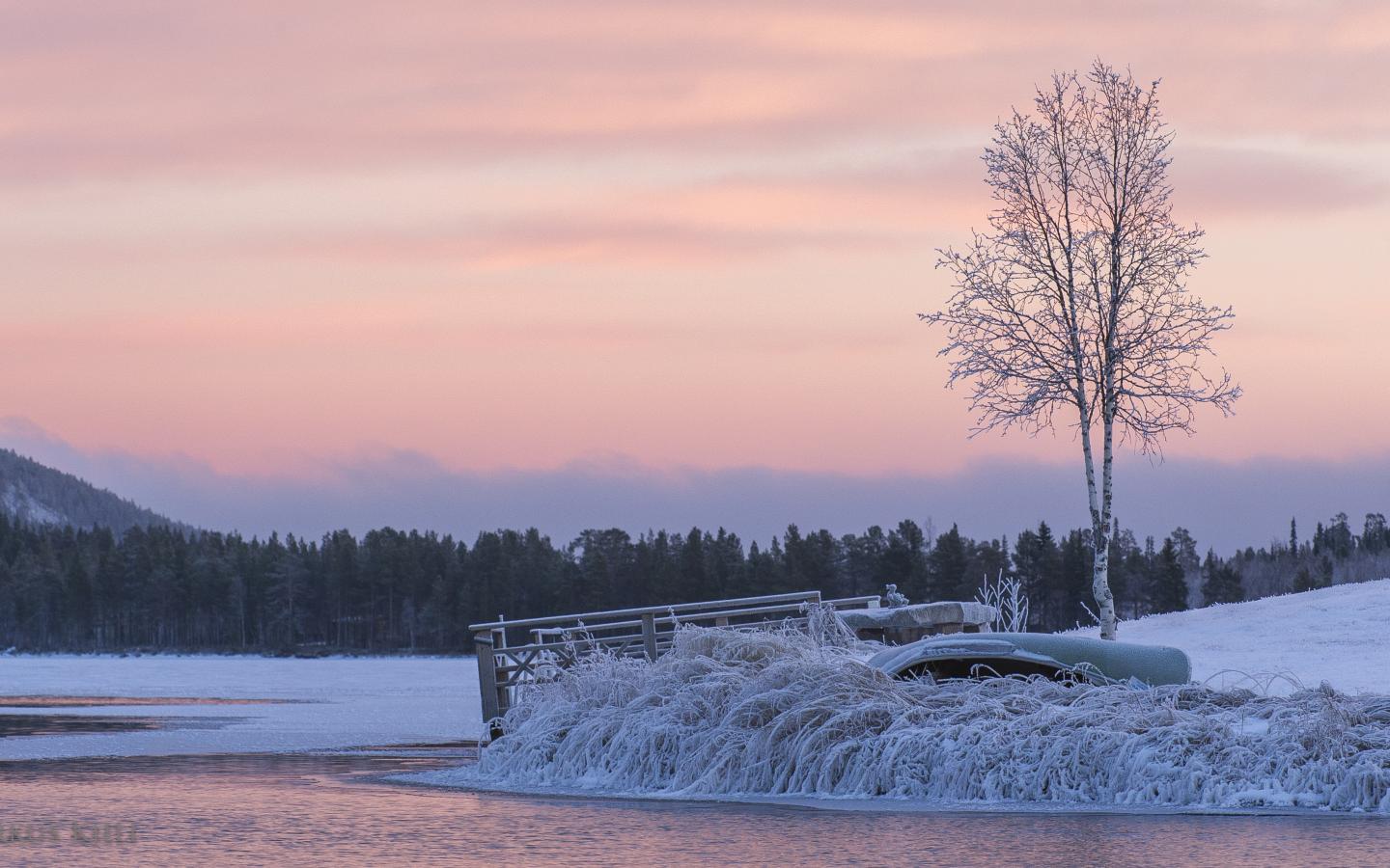 Wallpaper Winter river shore
