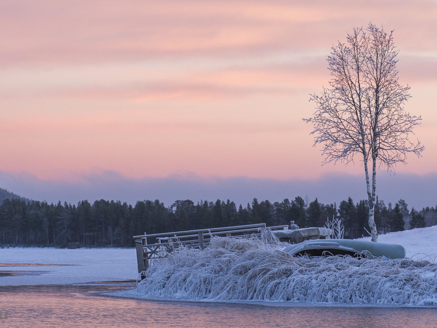 Wallpaper Winter river shore