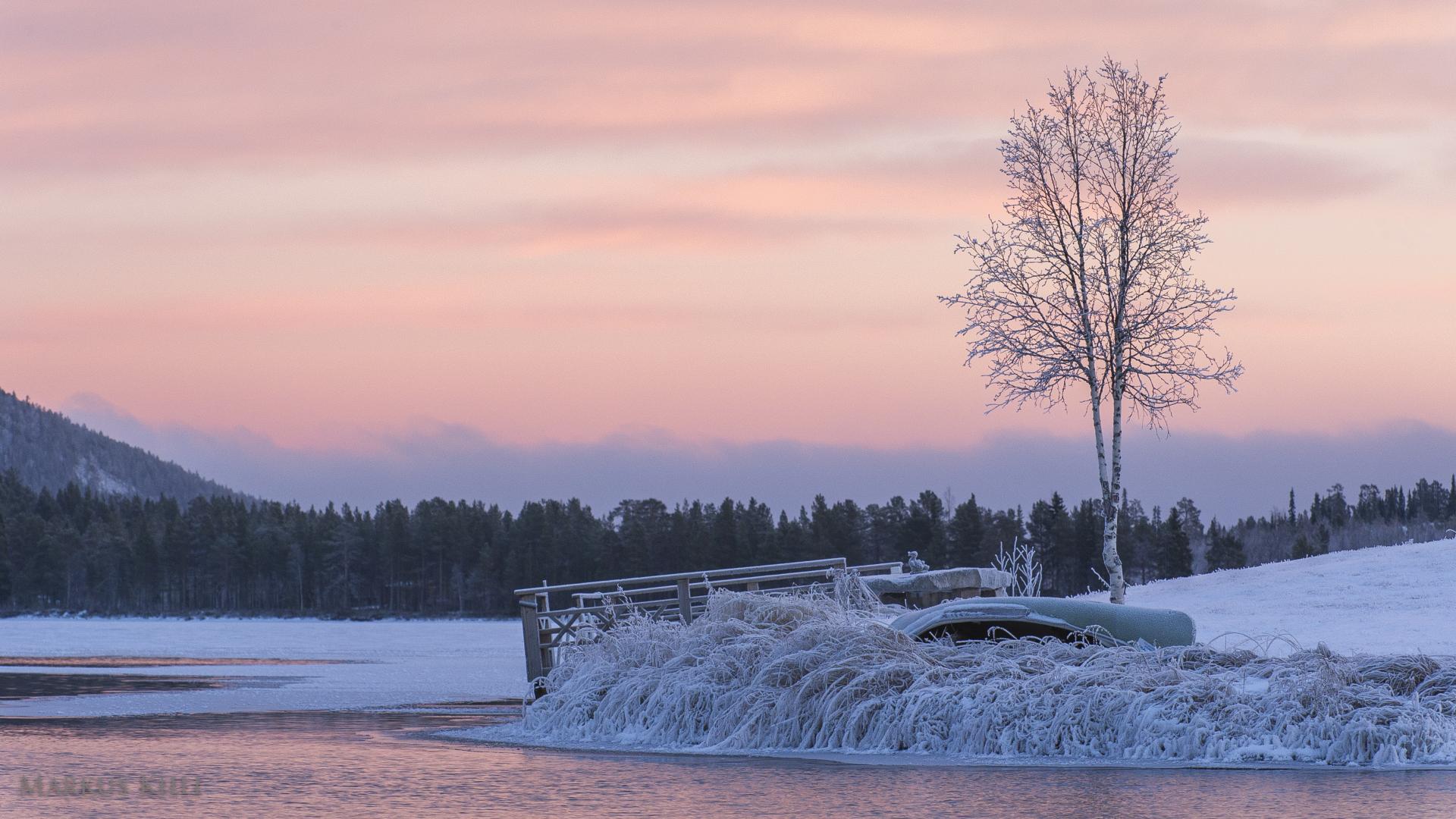 Wallpaper Winter river shore