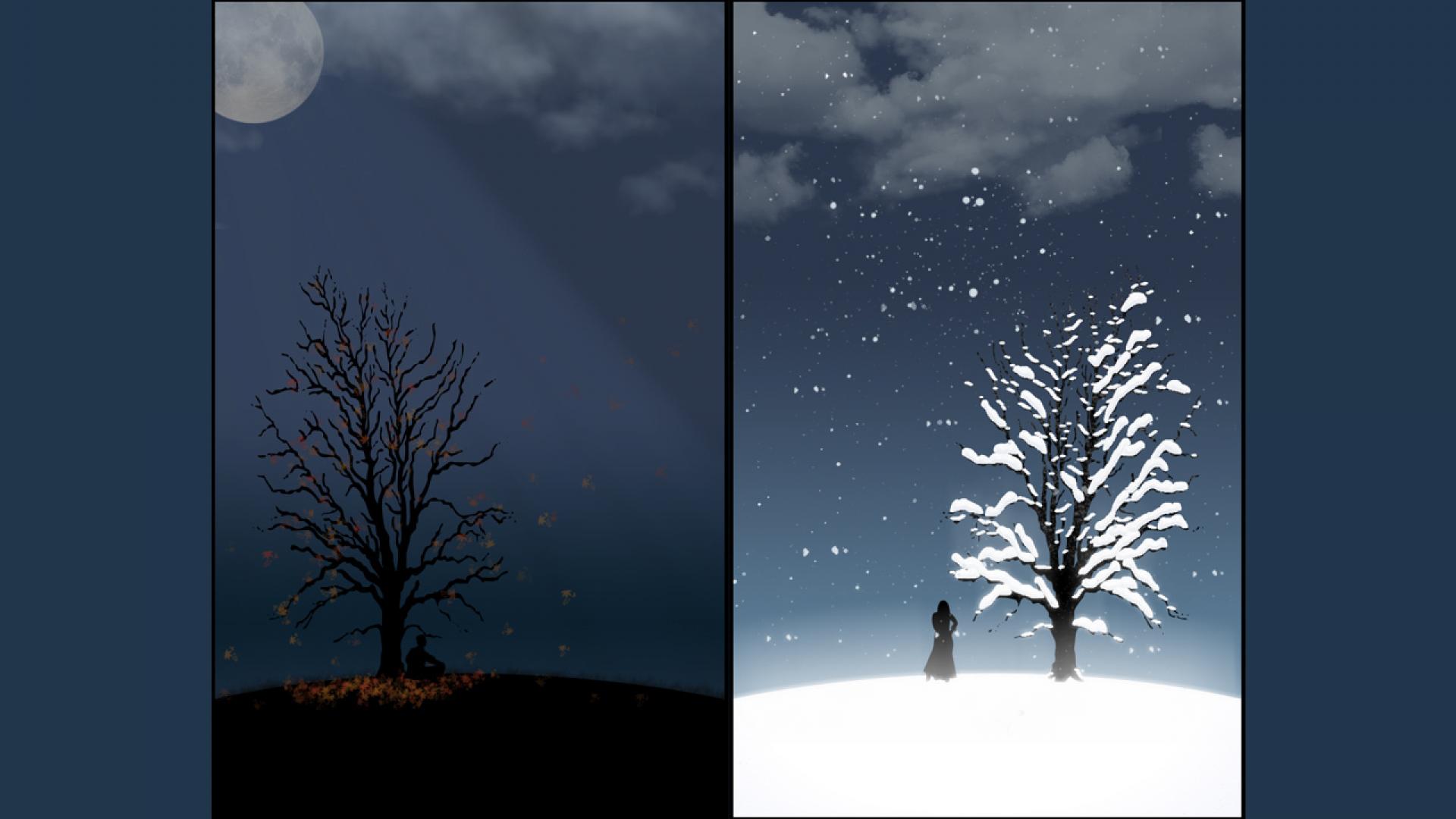 Wallpaper Snow, Road, Winter night, Sun, Moon, Stars, Winter road