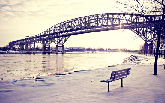 Wallpaper Bench on a snowy embankment