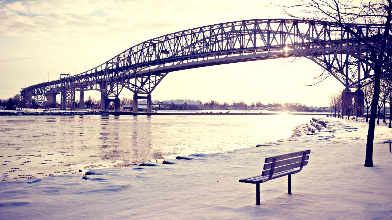 Wallpaper Bench on a snowy embankment