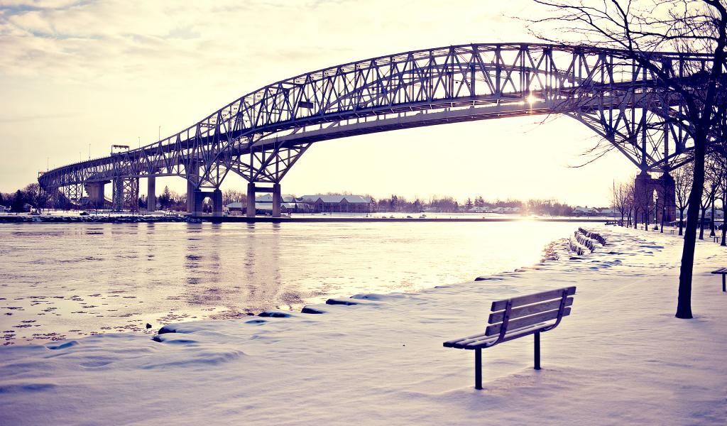 Wallpaper Bench on a snowy embankment