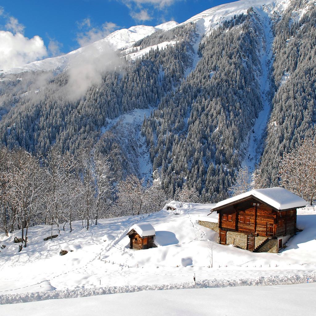 » Wallpaper The house in the winter mountains