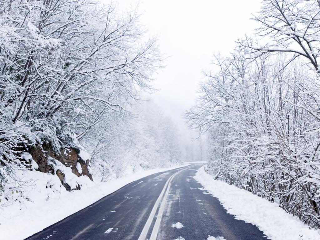 Wallpaper Snow, Road, forest road
