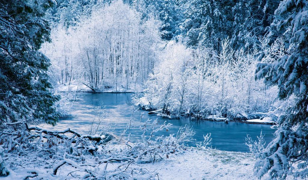 Wallpaper The river in the winter forest