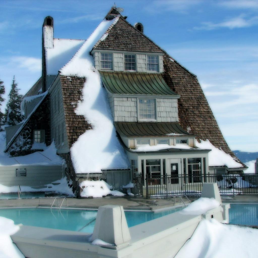 Wallpaper Snow-covered house with swimming pool