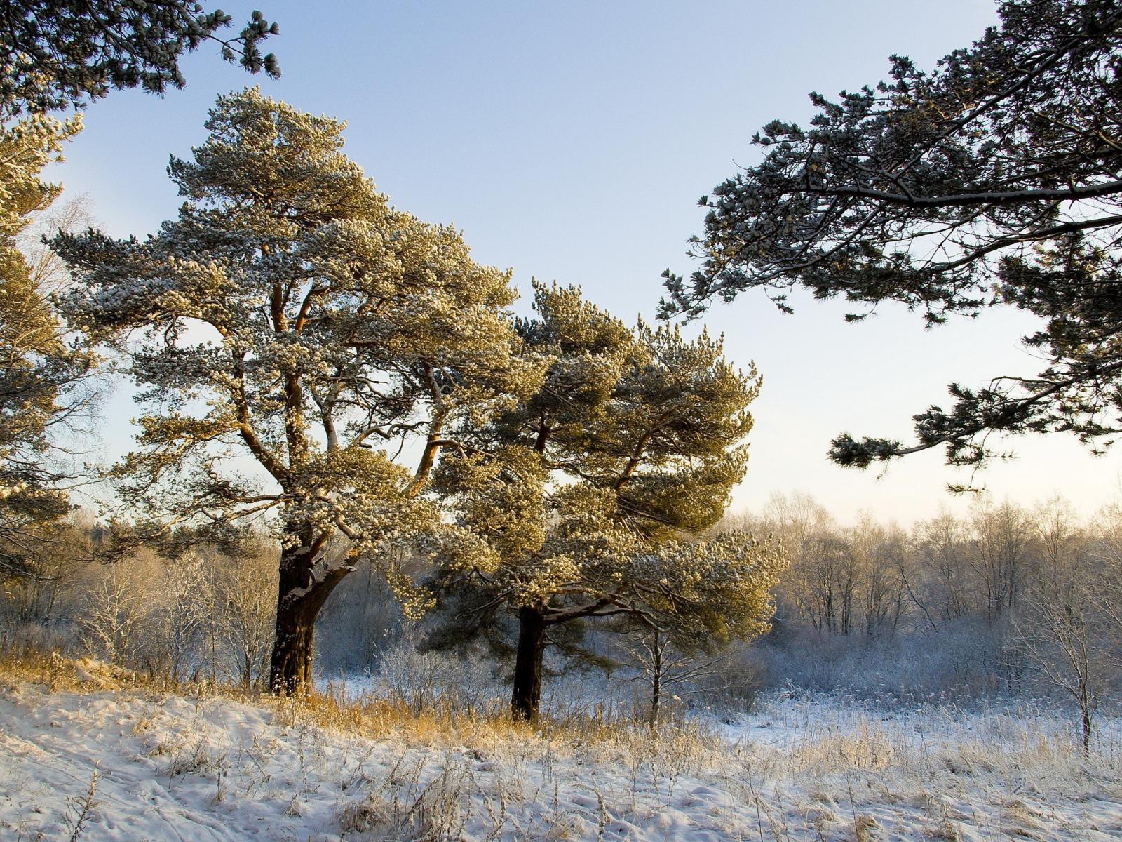 Wallpaper Pine tree covered with snow