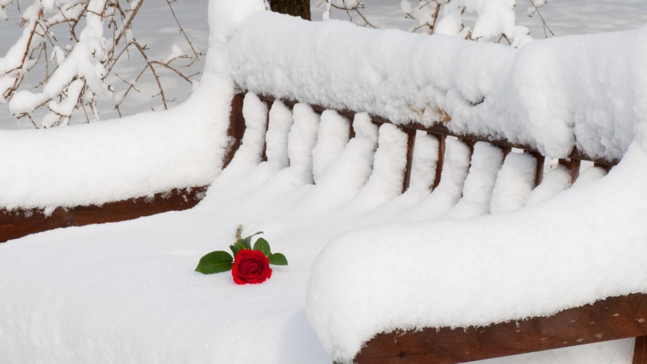 Wallpaper Rose on the snow-covered bench
