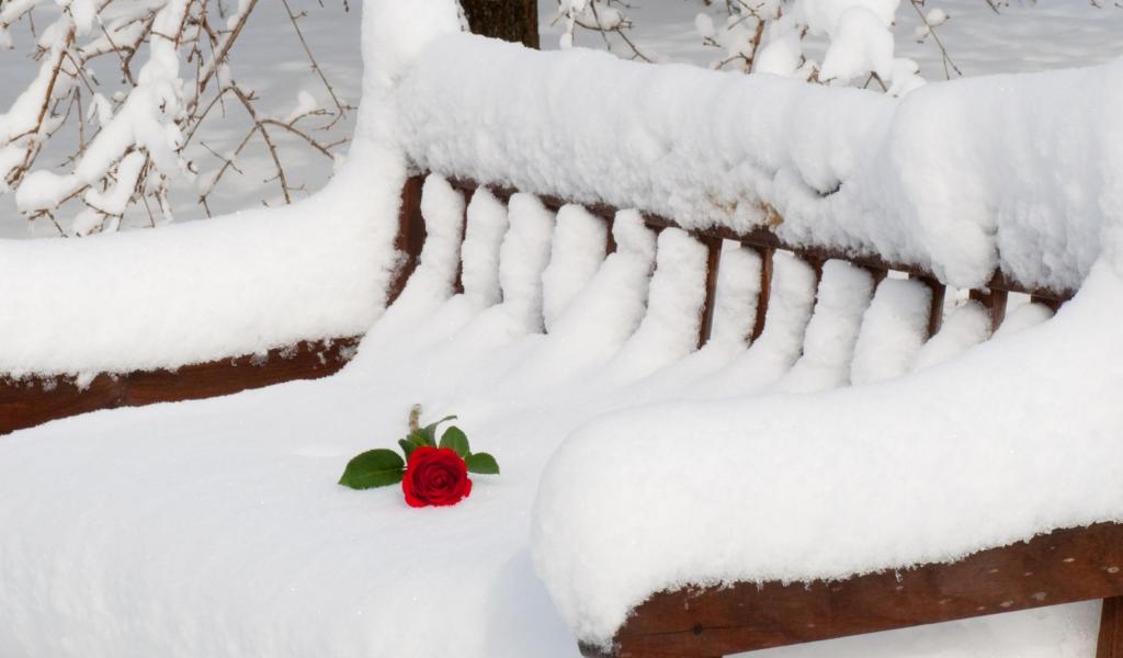 Wallpaper Rose on the snow-covered bench