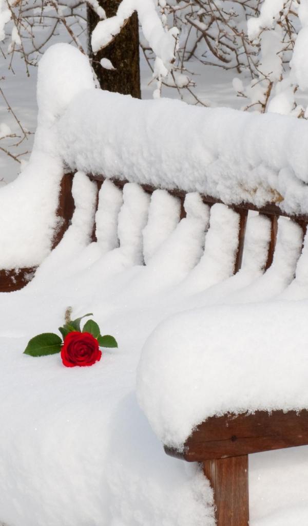 Wallpaper Rose on the snow-covered bench