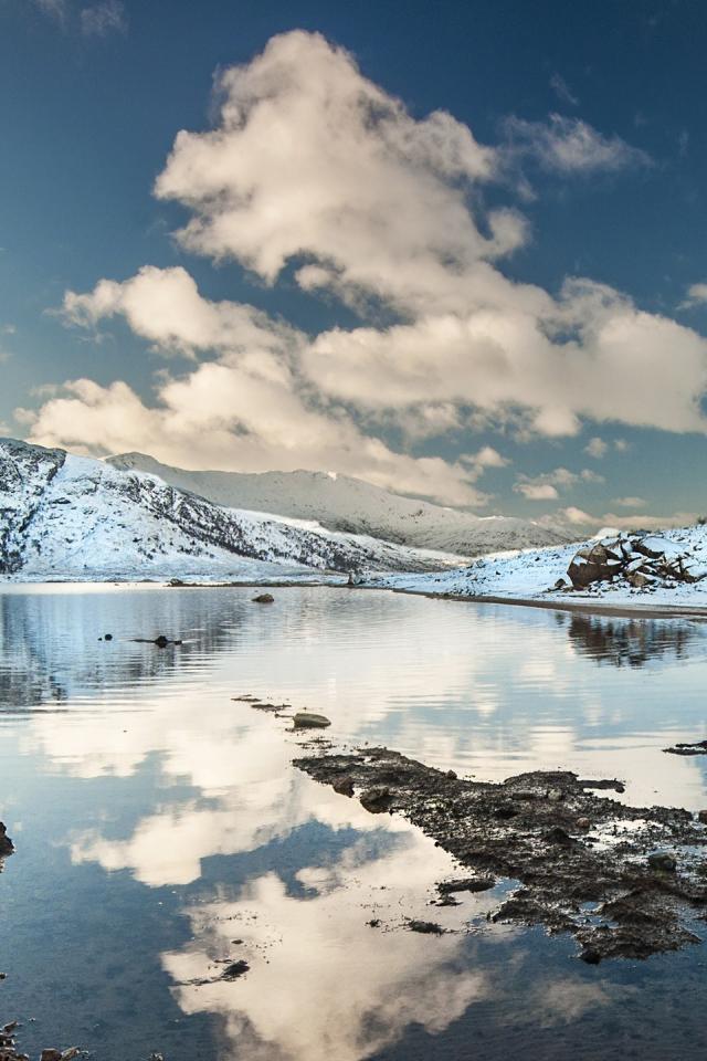 Wallpaper Snow on the shore of lake